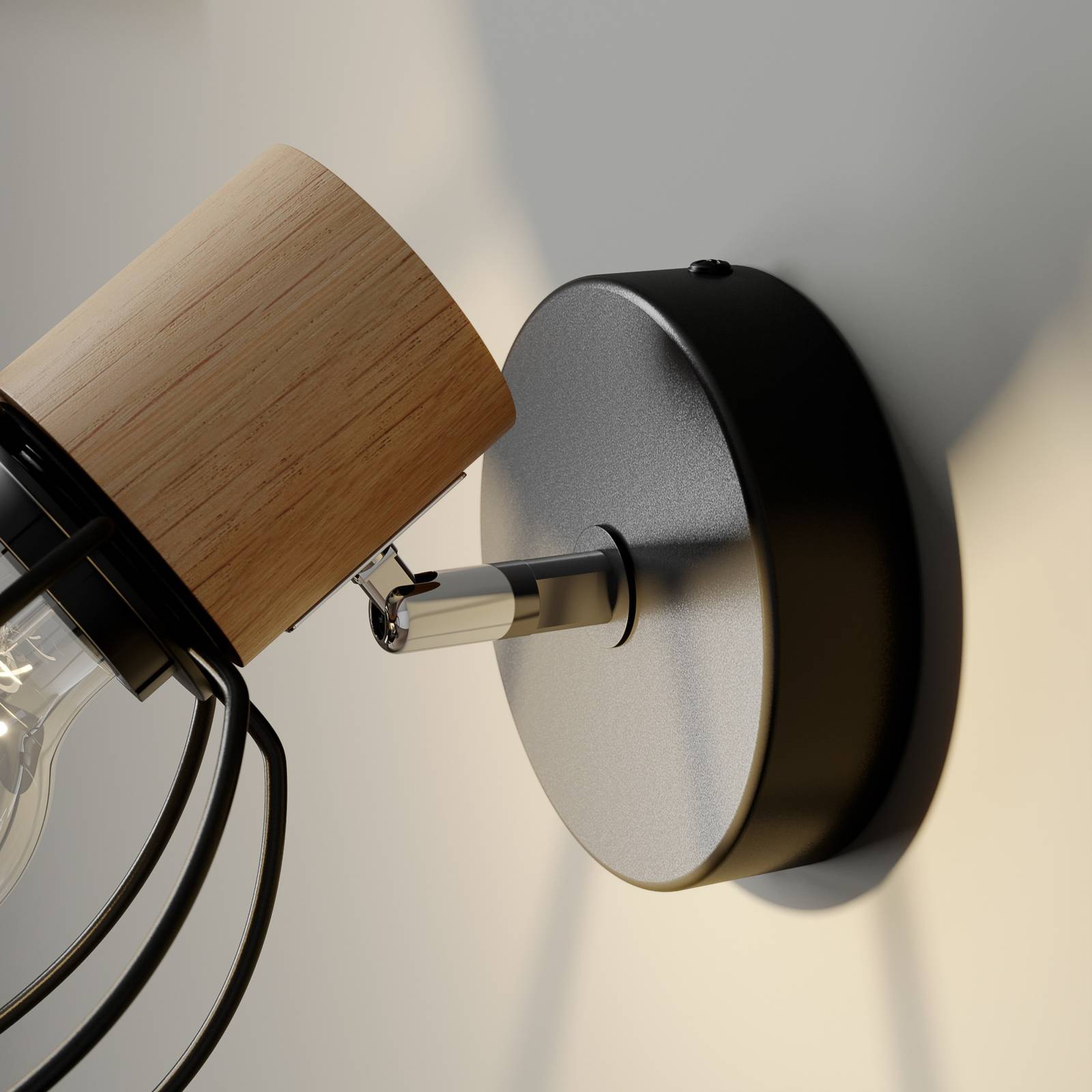 Applique Fence a 1 luce con paralume aperto in metallo L'applique Fence è composta da una staffa a muro e da un paralume in metallo nero. L'elemento di collegamento è cromato e il portalampada è in legno di quercia chiaro. La combinazione di materiali e colori è molto armoniosa e conferisce un aspetto moderno e naturale alla zona giorno. L'applique può essere utilizzata in diversi modi: è ideale come fonte di luce nel corridoio, ma può essere utilizzata anche in soggiorno o in camera da letto. La scelta della fonte di luce consente di adattare le condizioni di illuminazione alle preferenze personali. Poiché la sorgente luminosa è visibile, le sorgenti luminose decorative sono ideali per illuminare l'applique. Fence è un prodotto del marchio Envostar, che produce le sue lampade in Europa. Ciò significa che le distanze di trasporto sono brevi e le emissioni di CO2 sono notevolmente ridotte. Anche il legno di quercia utilizzato è certificato FSC e proviene da aree gestite in modo sostenibile. La neutralità climatica è importante anche per l'imballaggio, in quanto si evitano materiali usa e getta come il polistirolo o le pellicole di plastica.