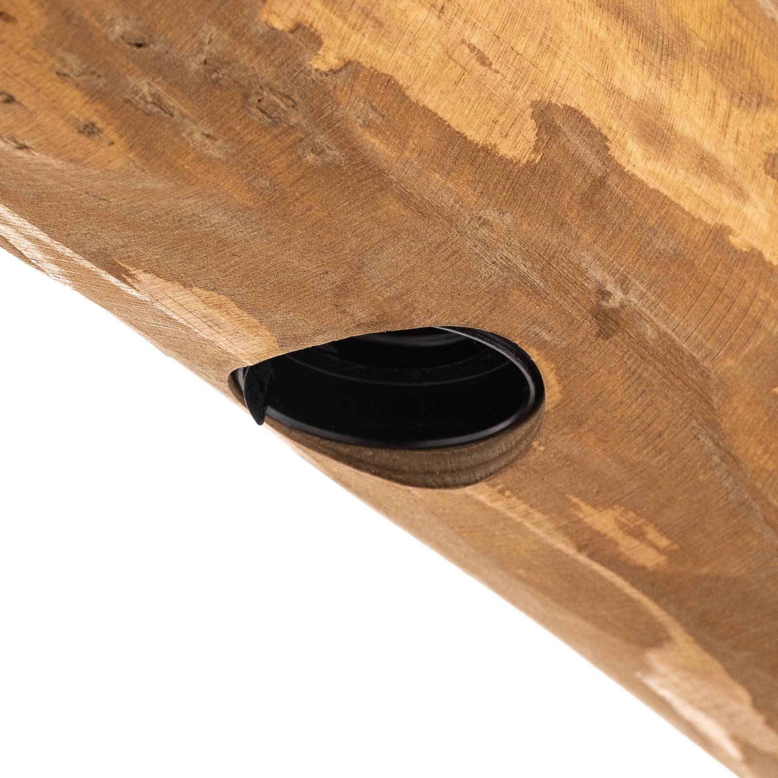 Plafoniera Beam a quattro luci con trave in legno di pino chiaro La plafoniera Beam ha un aspetto rustico ma moderno. Combina una staffa da soffitto in metallo nero con una trave in legno di pino scrostato e tinto in colore chiaro. La struttura e le venature chiare rendono ogni pezzo un oggetto d'arredo individuale e naturale. La parte inferiore della trave ospita quattro prese, ideali per l'installazione di lampade decorative (vedi accessori). La sostenibilità svolge un ruolo centrale per il marchio Envostar. Grazie alla produzione in Europa, le luci richiedono percorsi di trasporto gestibili e vengono fornite in materiali di imballaggio riciclabili.