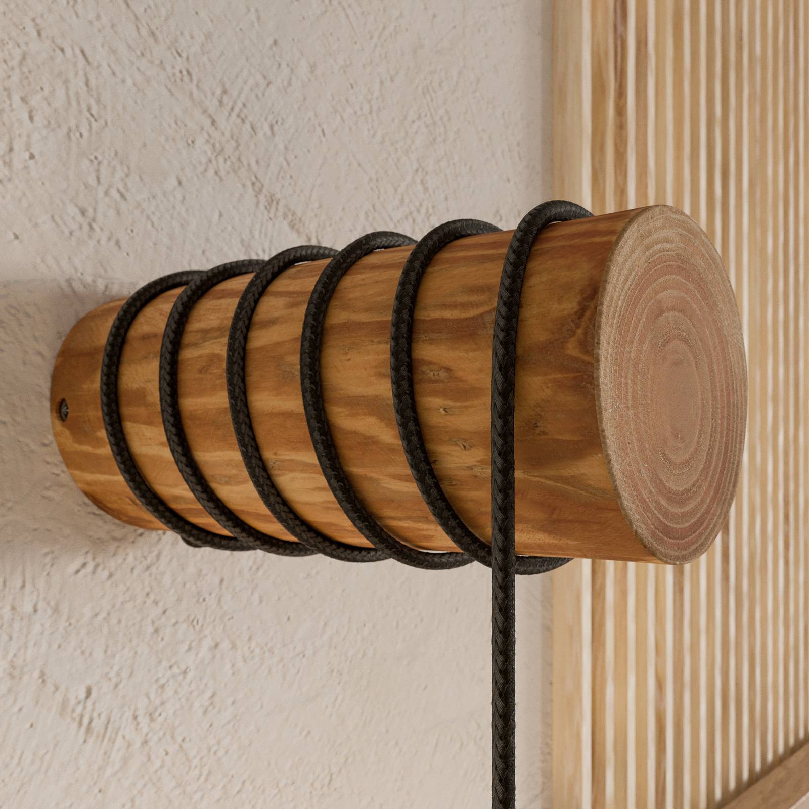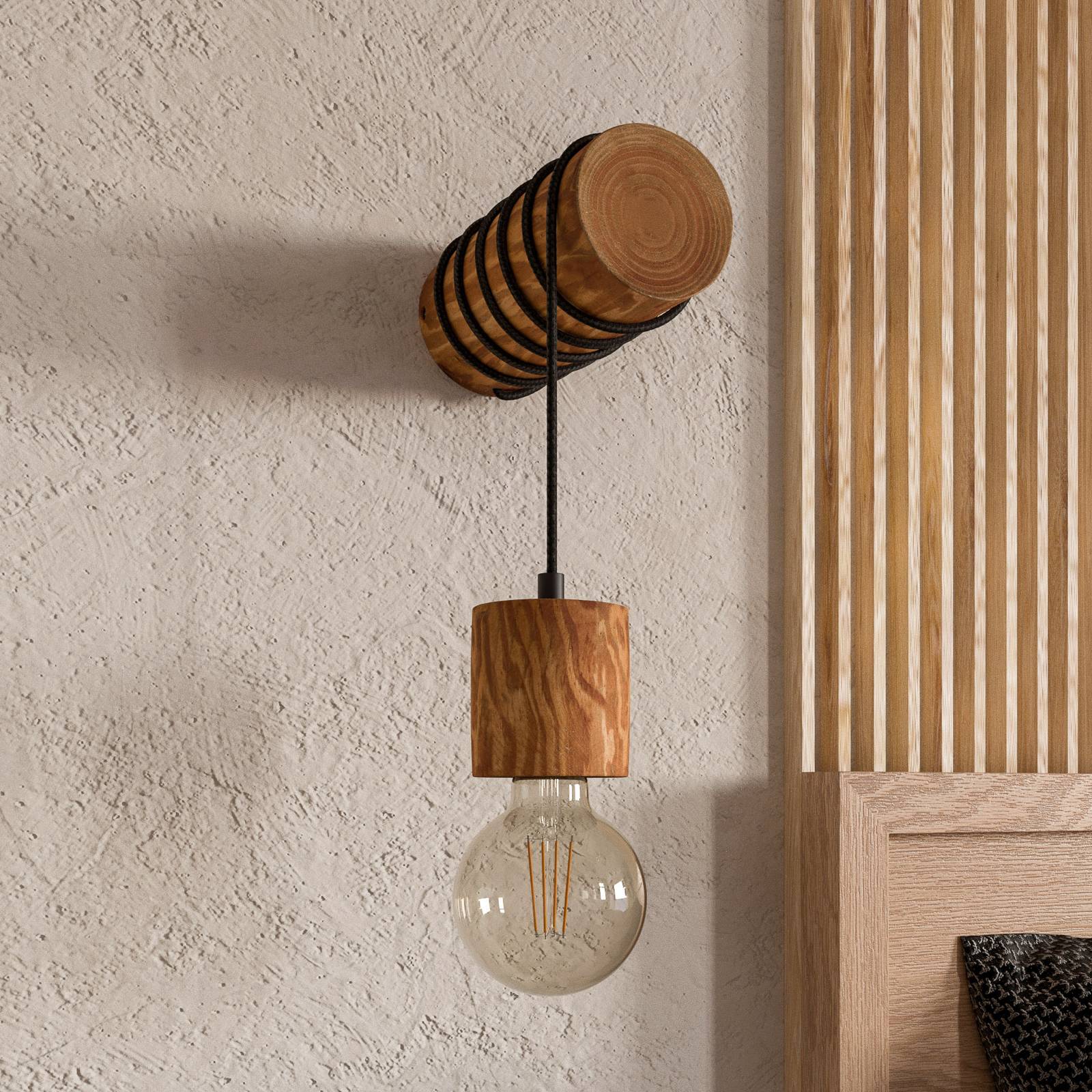 Applique Terra in legno di pino chiaro certificato FSC L'applique Terra colpisce soprattutto per il suo aspetto naturale, che conferisce all'ambiente un'atmosfera accogliente. Il supporto a parete è progettato come un tronco di legno che sembra sporgere dalla parete. Il portalampada è collegato al tronco avvolgendo il cavo tessile nero intorno alla staffa. La lunghezza della sospensione può essere regolata e adattata alle preferenze personali. La staffa a parete e il portalampada sono realizzati in legno di pino chiaro, per consentire una chiara visione della lampadina e renderla ideale per le lampade decorative. La sorgente luminosa può essere selezionata in base alle preferenze personali, assicurandosi di scegliere la giusta potenza e la dimensione della portalampada. Le condizioni di illuminazione possono quindi essere personalizzate in base alle preferenze individuali. L'applique è ideale per l'uso in corridoi, soggiorni e camere da letto. Il marchio Envostar attribuisce grande importanza alla sostenibilità nella produzione delle sue lampade. Il legno di pino utilizzato proviene da regioni ecologiche ed è certificato FSC. La produzione in Europa comporta percorsi di trasporto brevi, con un impatto positivo sulle emissioni di CO2. Terra viene spedita in imballaggi realizzati con materiali riciclabili.