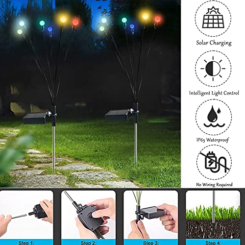 ENVVA Solar Powered Firefly Lights Outdoor Waterproof, 2pcs LED Solar Firefly String Lights, Solar Starburst Swaying Garden Lights, Swaying When Wind Blows, Outdoor Decorative String Lights