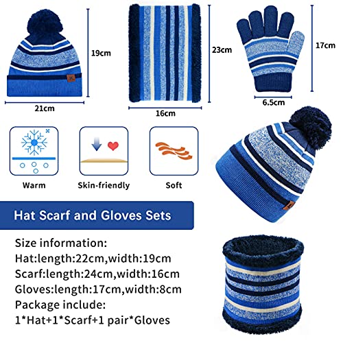 Enwokran 3in1 Inverno Berretto Scaldacollo Guanti Set, Cappello Bambino Caldo Inverno Crochet Berretto con Sciarpa e Guanti tra 3 e 6 anni Ragazze Ragazzi (blu)