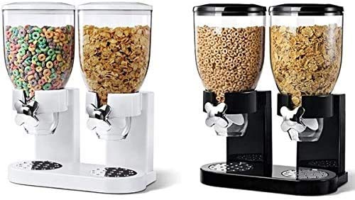 Enyaa, distributore di cereali ermetico, singolo, doppio, contenitore trasparente con vassoio per alimenti secchi, cereali per la colazione, cibo per animali domestici, cane, gatto, caramelle e cibo, colore nero e bianco Double White