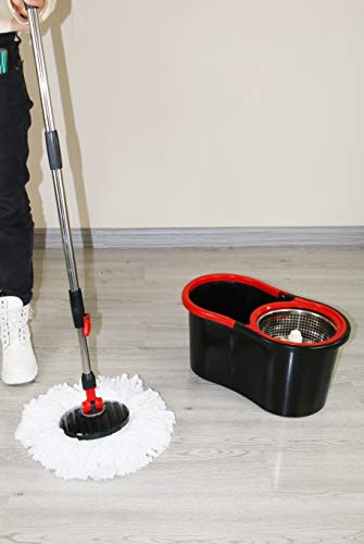 Enyaa, set di manico e 2 teste con straccio in microfibra per spazzolone girevole.