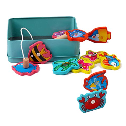 Enzege Gioco di Pesca Magnetica Pesca A Line, Tutti Piccoli - Include 15 Pesci Differenti, 1 Canna, Puzzle in Legno