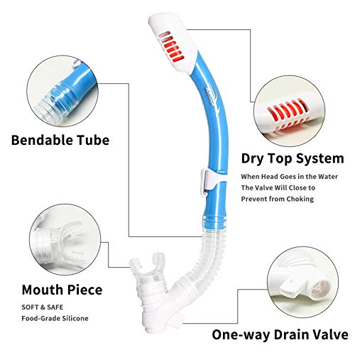 La parte superiore asciutta completa impedice l'acqua di entrare snorkel