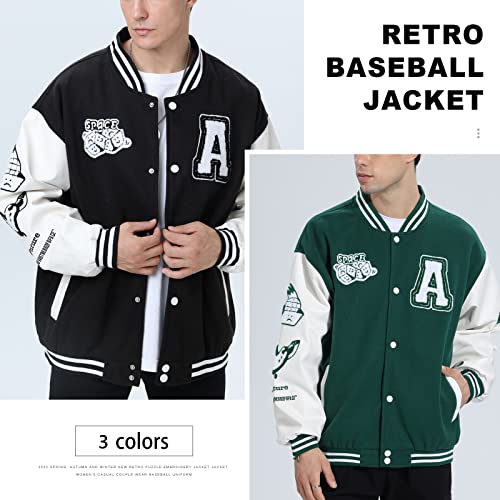 Eocicvvi Giacca Uomo da Baseball Lettera Ricamo Varsity Jacket Donna Vintage Cappotto Unisex Giubbotto da Coppia Autunno Inverno