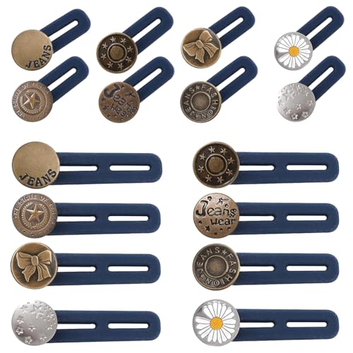 EODKSE 16 Pezzi Estensioni Girovita Pantaloni con Bottone Elastico Regolabile, Adatto a Tutti i Tipi di Pantaloni, Colore Blu, Ideale per Jeans e Varie Forme di Pantaloni