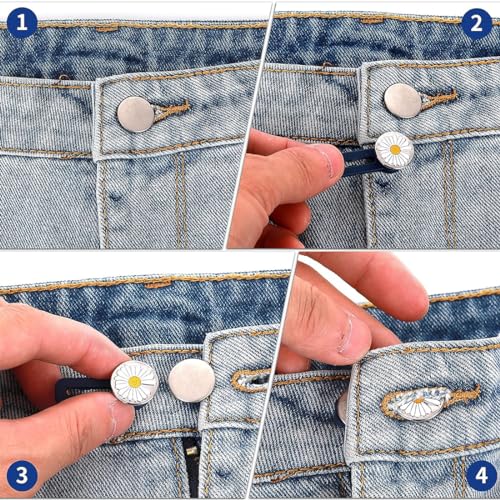 3. Bottoni Miracolosi Riutilizzabili: Non è necessaria la cucitura! Attacca facilmente questi bottoni ai tuoi pantaloni preferiti per aggiungere spazio extra alla tua vita. Rimuovili quando non ne hai più bisogno, risparmiando tempo ed energia.