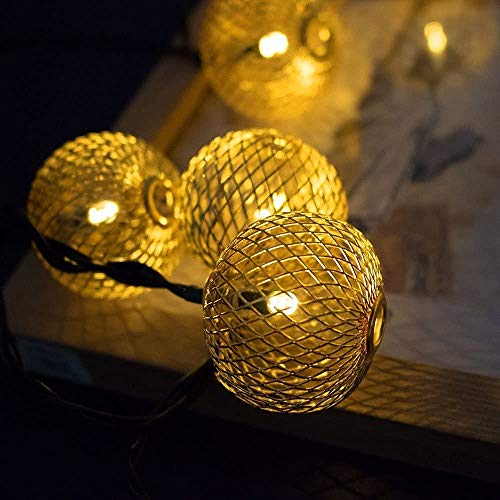 EONANT Catena di luci a energia solare per esterni, in metallo, 20 LED, luce bianca calda, decorazione per la camera da letto, il giardino di nozze (lanterna)