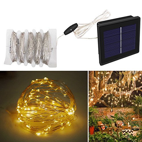 Eonfine stringa solare illumina su filo di rame flessibile 72ft 150 LED per esterno leggiadramente solari String Lights Ambiance illuminazione per giardini, case, festa di Natale-2 Modalità (steady on / flash) bianco caldo