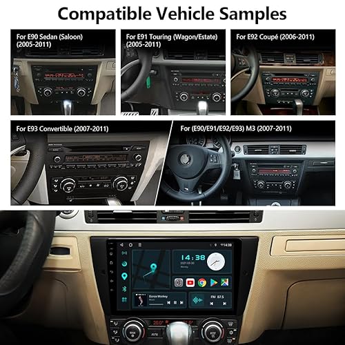 Eonon 9 inch Android 12 Car Stereo for BMW 3 Series E90 E91 E92 E93 (2005-2011) 6GB+64GB CarPlay Android Auto 4G GPS Sat Nav DSP Bluetooth WiFi Support DAB+ OBDII AHD Cam Headunit E90A12S(6GB)