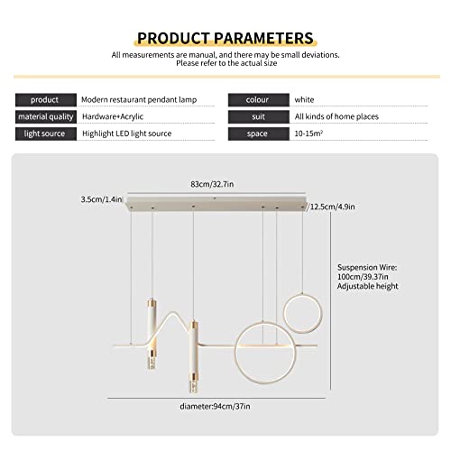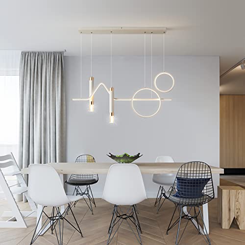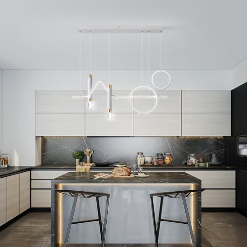 Eoodis Lampade a sospensione moderne, LED Lampadario dimmerabile, Lampada a sospensione per sala da pranzo, Luce lineare per sala da pranzo per soggiorno con isola della cucina (Bianco 40W)