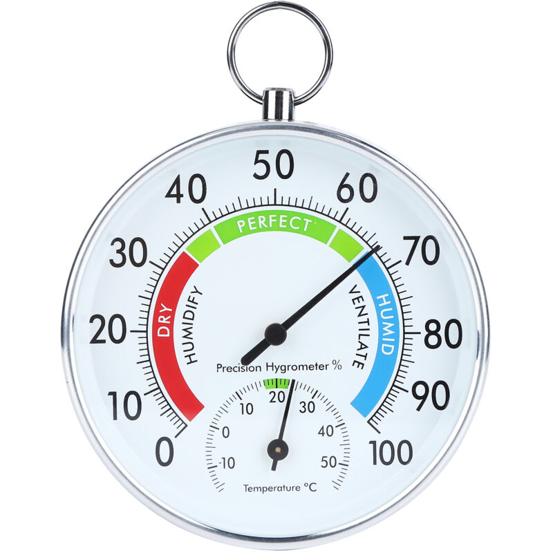 Lineamenti: 1. Il termoigrometro viene utilizzato principalmente per misurare le variazioni della temperatura ambientale e dell'umidità relativa. 2. Può cogliere i cambiamenti di temperatura e umidità ambientale in qualsiasi momento, al fine di effettuare le regolazioni corrispondenti. 3. Con anello per appenderlo, adatto per interni domestici, piantagioni di serre e misurazione della temperatura in magazzino. 4. Contiene più fori per l'aria, conformi al principio del flusso d'aria ed è più adatto per il rilevamento atmosferico. 5. Elevata precisione di misurazione della temperatura e dell'umidità, con piccoli errori e lunga durata. Specificazione: Condizione: 100% nuovo di zecca Tipo di articolo: termometro igrometro Materiale: lega di alluminio + plastica Intervallo di misurazione: umidità 0-100% RH, temperatura -15-50℃ Errore di misurazione: umidità ± 5%RH, temperatura ±2℃ Temperatura e umidità interna più adatte: Inverno: Temperatura: 18℃-25℃, Umidità: 30%-80% Estate: Temperatura