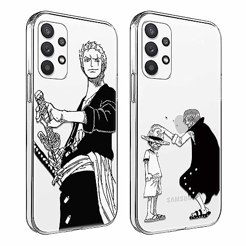 Eouine 2 Confezione Custodia per Samsung Galaxy A32 5G 6.5" Anime Zoro Trasparente Case Morbida TPU Antiurto Silicone Anime Luffy Cover 3D Disegno per Samsung A32 5G