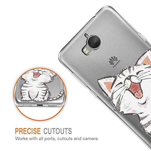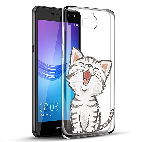 Eouine Cover Huawei Nova Young, Ultra Slim Custodia Cover Trasparente con Disegni, Morbido Antiurto Gel Bumper Case in TPU Silicone per Huawei Nova Young / Y5 2017 / Y6 2017 (Gatto Sorridente)