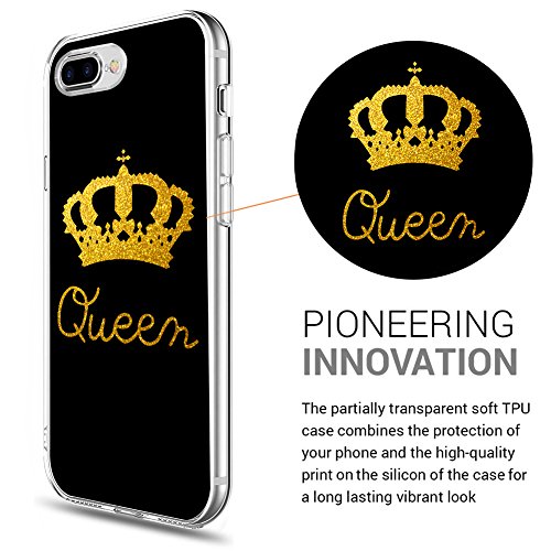 Eouine Cover iPhone 8/7, Custodia Silicone con Queen King Corona Disegni, Ultra Slim TPU Morbido Antiurto Bumper Case per Apple iPhone 8/7 (Queen, Oro)