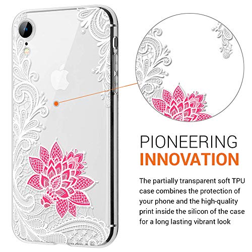 Eouine Cover iPhone XR, Custodia Cover Silicone Trasparente con Fiore Animali Disegni Ultra Slim TPU Morbido Antiurto 3D Cartoon Bumper Case per Apple iPhone XR (Mandala, Bianco-Rosa)