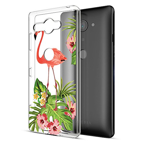 Eouine Cover Sony Xperia XZ2 Compact, Custodia Cover Trasparente con Disegni Ultra Slim TPU Silicone Morbido Antiurto 3D Cartoon Bumper Case per Sony Xperia XZ2 Compact (Struzzo e Fiore)