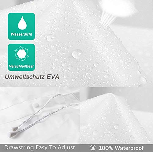 【Pratico poncho antipioggia】Cappuccio con coulisse e bottoni automatici per la chiusura. Maniche lunghe e grande cappuccio con coulisse per mantenervi asciutti in caso di pioggia. Il poncho antipioggia è facile da mettere e togliere. Facile da pulire, in caso di macchie, pulire con un panno umido e metterlo in un luogo ventilato. Questo impermeabile trasparente si adatta a tutti i vestiti e colori.