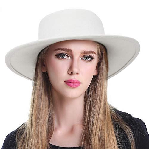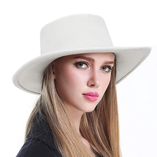 EOZY-Cappello Jazz Panama Uomo Donna Lana Vintage Berretto Cerimonia Estivo Tesa Larga Fedora da Sole Bianco