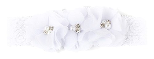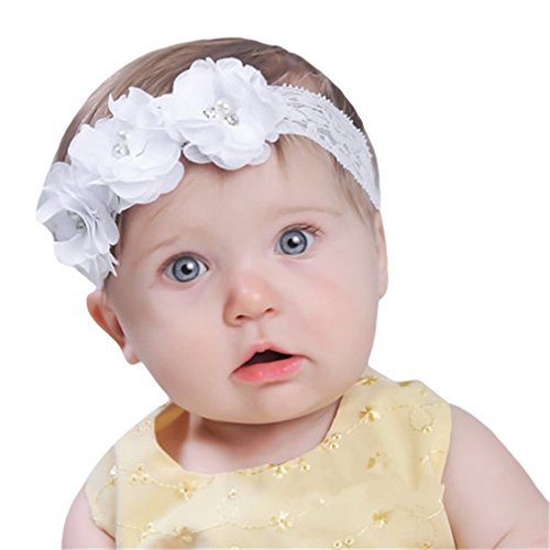 EOZY-Neonata Bambina Fascia Capelli Lace Perline Cerchietto Floreale Elastici Bianco Misura 36cm