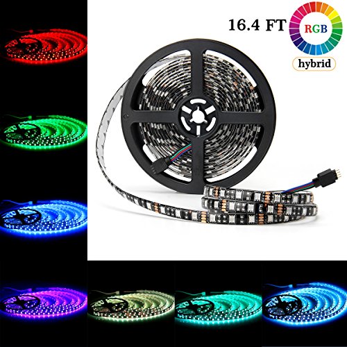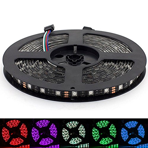 Combinazione. Striscia di RGB LED in nero PCB, controllato mediante telecomando, colori cangianti, impermeabile, 5 m in ogni confezione. Con telecomando e alimentatore di rete, non necessario l' acquisto di altri accessori extra.