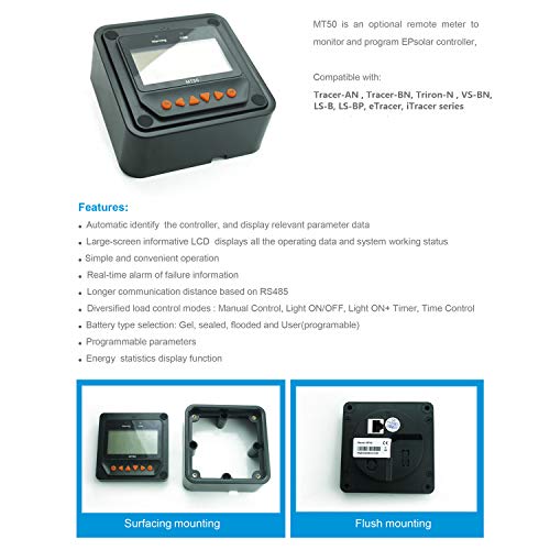 Il nuovo misuratore remoto EPever MT50 (versione: SV2.18+HV2.0) è un misuratore remoto opzionale per monitorare e programmare il controller EPsolar / EPEVER. Compatibile con: Tracer-AN, Triron-N, XTRA-N, Tracer-BN, Tracer-BP, LS-B, LS-BP, VS-BN, eTracer, iTracer e altri controller della serie EPever. non adatto per altri controller di marca.