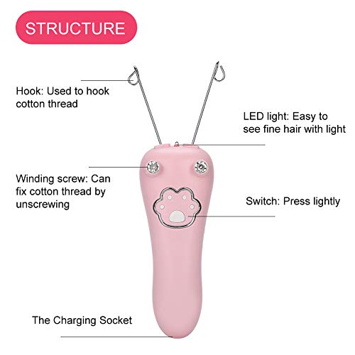 Epilatore Elettrico con Filo di Cotone, Dispositivo di Rimozione dei Peli del Corpo Epilatore Facciale Dispositivo di Filettatura Trimmer Strumento per Rimuove viso, labbra(rosa)