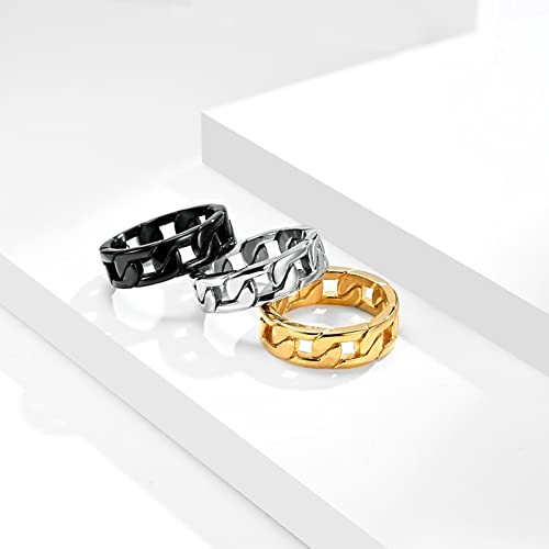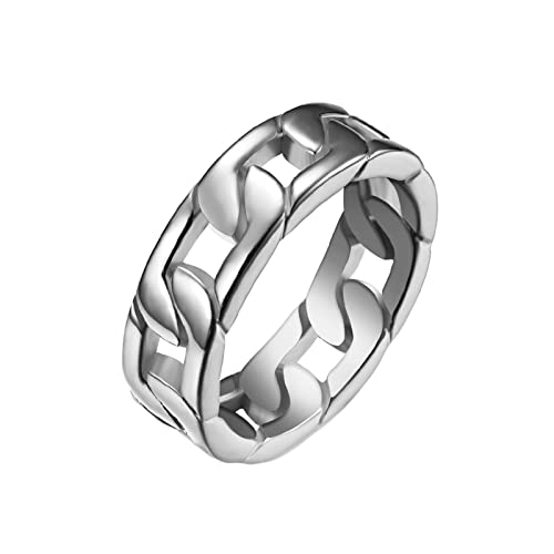 Epinki 7MM Anelli Acciaio Semplici, Anello Catena Cubana Argento Anelli a Fascia per Uomo Misura 14