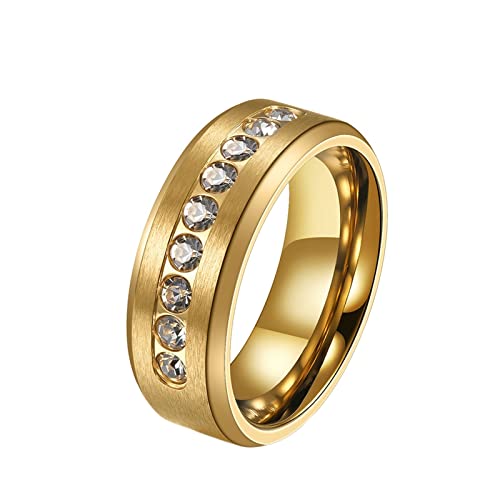Epinki 8MM Uomo Anelli, Anello Strass Semplice Oro con Zirconi Bianco Anello Anniversario Matrimonio in Acciaio Inossidabile Misura 27