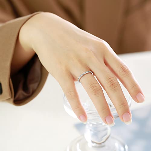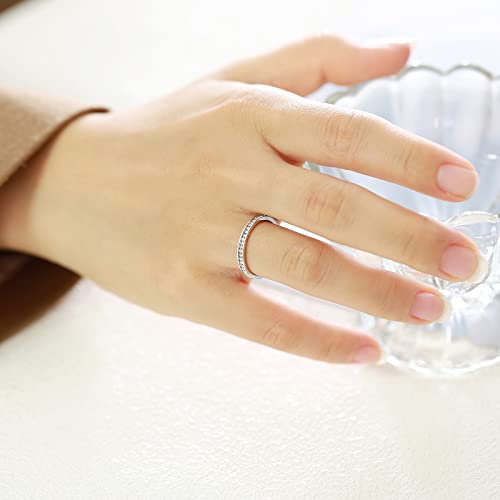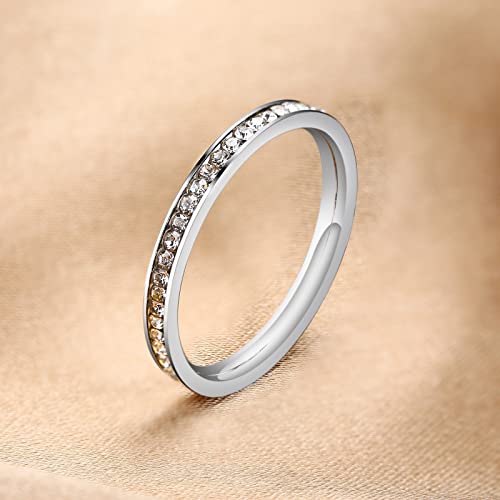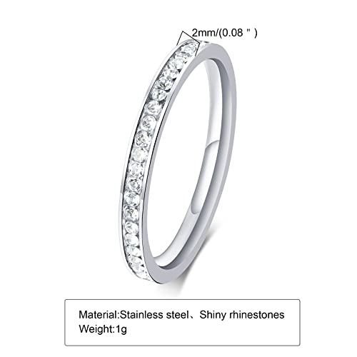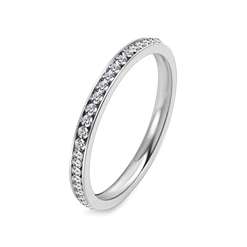 Epinki Anelli Donna Fidanzamento, Anello 2MM Fedine Argento con Zirconi Bianco Acciaio Inossidabile Anelli Fedine Misura 14