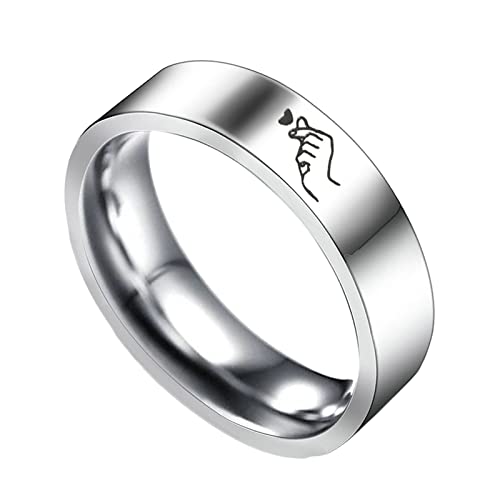 Epinki 4MM Anello da Donna Acciaio, Anello Amore Gesto Cuore Argento Anelli Dell'Amicizia Misura 12