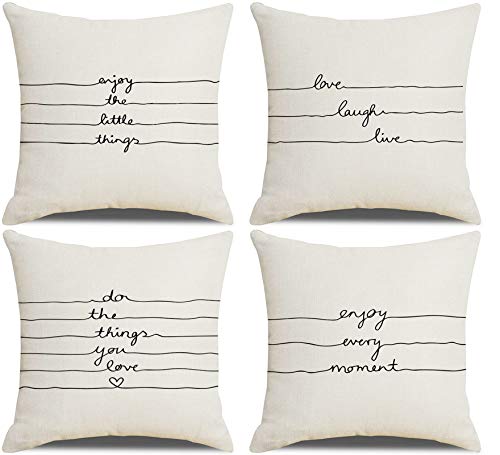 Epinki Federe Cuscini 40 x 40, Federe Cuscini Divano Do The Things You Love Cuscino Divano Lino, Beige Nero