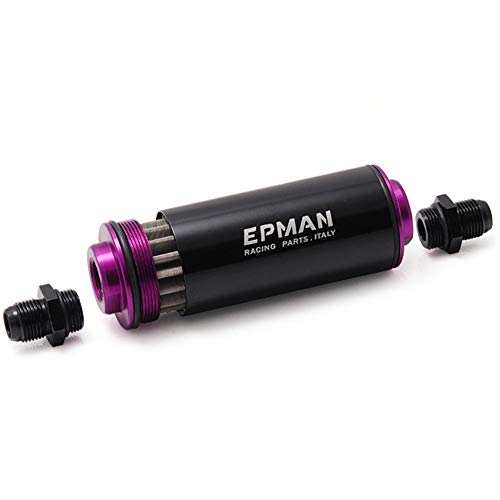 EPMAN Universale 100 Micron AN8 Alluminio Alto Flusso Carburante Inline Filtro Benzina Auto Camion Filtro Carburante (Nero)