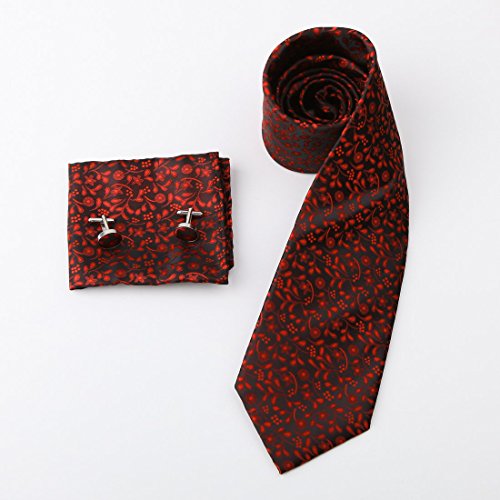 Epoint PH1087 Nero Borgogna Paisley Mondo Presenta tessuto cravatta di seta Fazzoletti gemelli Gift Box Set Nero Mens Stile