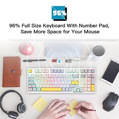 Epomaker, TH98, Tastiera meccanica al 96%, sostituibile a caldo, tastiera meccanica wireless da gioco, 2,4 GHz/Bluetooth 5.0/cablata, RGB, tasti MDA PBT, controllo pulsanti per Mac/Win/Linux, Gateron giallo