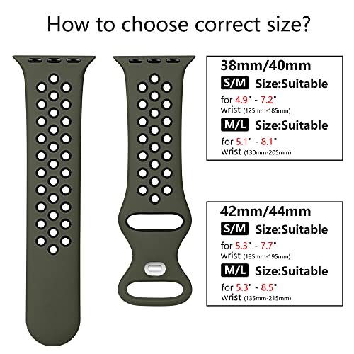 Epova Sport Cinturino in Silicone Compatibile con Apple Watch 44mm 42mm 45mm 49mm, Traspirante Cinturini di Ricambio per iWatch SE Series 9 8 7 6 5 4 3 2 1, Verde Militare/Nero, Grande