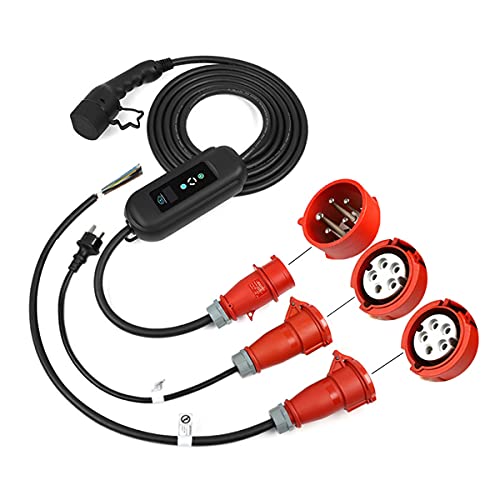 2 connettori: questo caricabatterie può essere utilizzato come 1 fase o trifase con l'adattatore, se si desidera utilizzare 3 fasi, basta collegare la spina rossa. Se si desidera utilizzare 1 fase, utilizzare l'adattatore insieme al caricabatterie.