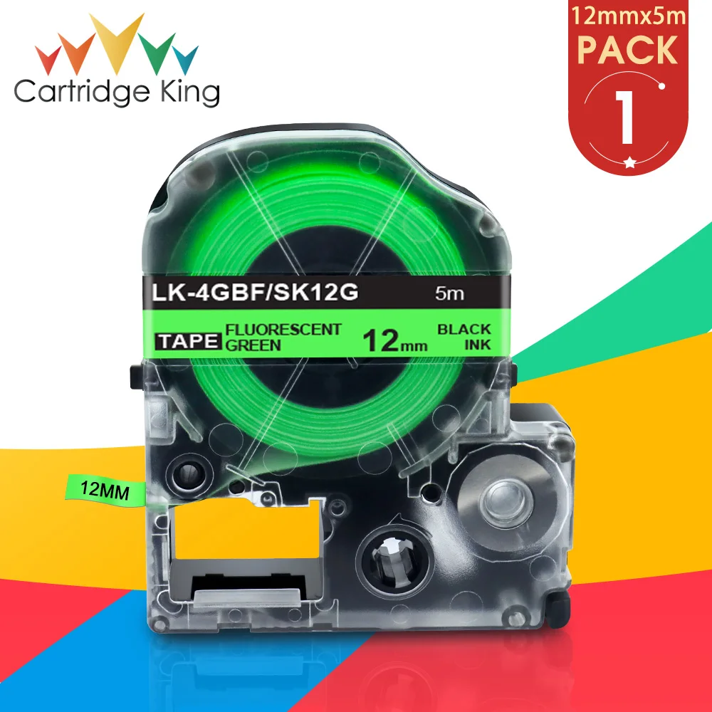 For Epson 12mm Fluorescent Label Tape Black on Fluorescent Green SK12G LK-4GBF Label Maker fit for Epson King Jim LW-400 LW-300