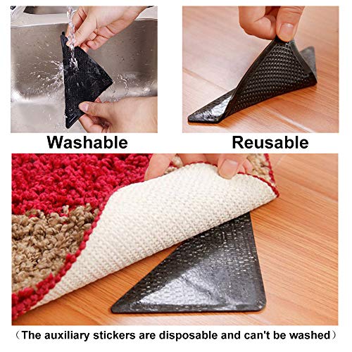 ✪✪ Riutilizzabile e Lavabile: La nostra antiscivolo per tappeti è realizzata in gel PU di alta qualità. È resistente e riutilizzabile. Quando il tappeto ha bisogno di essere pulito, strappa antiscivolo Sottotappeto per Tappeti dal tappeto. Lavalo sotto l'acqua corrente e lascialo asciugare. Attaccalo quando il tappeto è asciutto. Gli adesivi ausiliari sono usa e getta e non possono essere lavati.