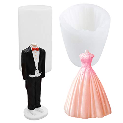 EQLEF Muffle - Candela in silicone, abito da sposa a forma di stampo in silicone, fai da te, artigianato, strumenti per candela, casa, sapone, cioccolato, decorazione per matrimoni (sposo e sposa)