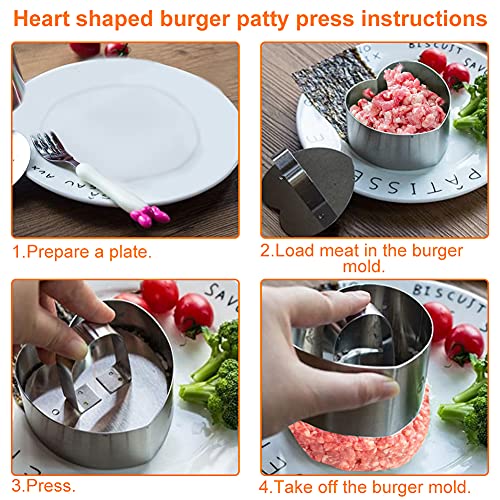 EQLEF Pressa Hamburger, Stampi per Hamburger Patty con Forma di Cuore Piccolo Burger Maker per Hamburger Grill BBQ Patty Making (2 Pezzi)
