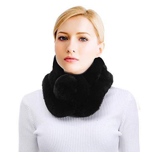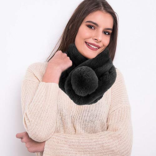 EQLEF Sciarpa in pelliccia sintetica Sciarpe in pelliccia finta nera Sciarpa collo caldo collo invernale con sfera morbida per donna (Nero)