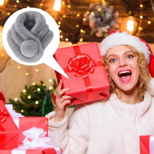 EQLEF Sciarpa in pelliccia sintetica Sciarpe in pelliccia finta Scollo invernale Collo caldo Sciarpa con sfera morbida per donna (Grigio)