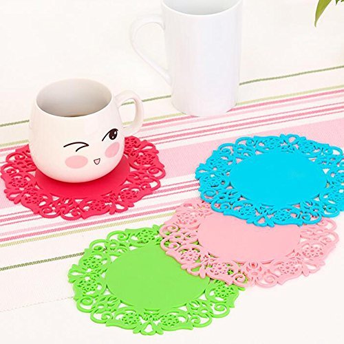 PACCHETTO INCLUDE: 12 x sottobicchieri in silicone. Diametro: circa 4 pollici. Colore: rosso, giallo, marrone, blu, verde, rosa. Modello: casuale.
