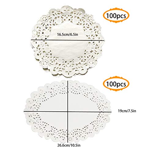 EQLEF Tovagliette Carta, Centrini ovali Rotondi Bianchi della Carta del Vassoio di Carta del Pizzo per i Dolci del Dessert del Biscotto della Torta 6.5In 7.3In 200pcs