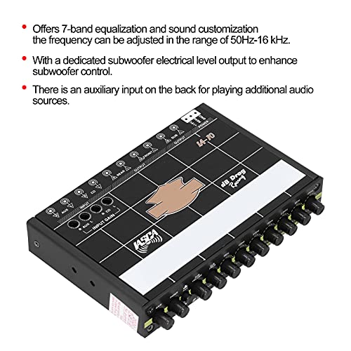 【MAGGIORE CONTROLLO DELLA SINTONIA】 Questo equalizzatore per auto offre equalizzazione a 7 bande e personalizzazione del suono, la frequenza può essere regolata nell'intervallo 50Hz-16kHz. Puoi avere il pieno controllo su come vuoi che la tua musica suoni più chiara, migliore, perfetta!