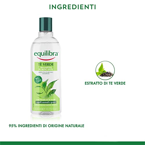Equilibra Capelli, Tè Verde Shampoo Purificante, Shampoo per Capelli Normali e Grassi, Effetto Purificante, con Estratto di Tè Verde, 95% Ingredienti di Origine Naturale, 6 Pezzi x 300 ml