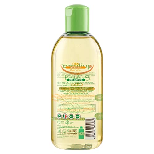 COSA CONTIENE: A base di Olio di Mandorle Dolci, emolliente e addolcente, Olio di Soia, addolcente, Vitamina E, che dona elasticità alla pelle e Bisabololo, addolcente