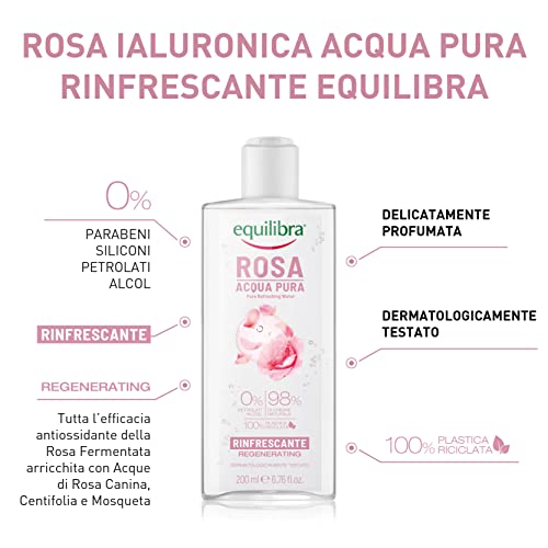 Equilibra Viso, Rosa Ialuronica Acqua Pura, Tonico Multiattivo con Rosa Fermentata, Acque di Rosa Canina, Centifolia, Mosqueta e Glicerina Vegetale, Rinfresca e Prepara la Pelle ai Trattamenti, 200 ml